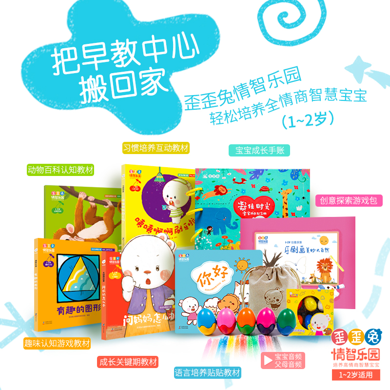 歪歪兔情智乐园分龄式早教,每月一套的早教教材,在家轻松早教,行为习惯、认知、语言、创造力,全情商五大领域全面培养。