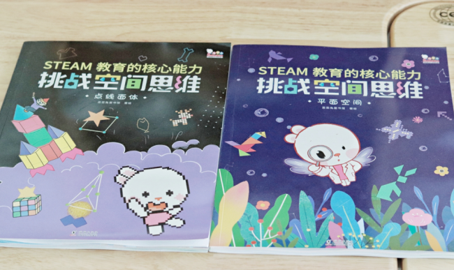 同样拼乐高积木,思维逻辑清晰,更容易上手,比如立体图形,在小学三四年级的数学课本里就占了一大部分。《挑战空间思维》里面的第四册和第五册里,立体空间和空间推理,就和我们小学数学息息相关。这也是我为什么注意训练孩子的思考能力及专注力的原因。