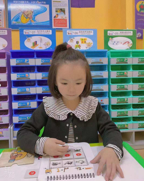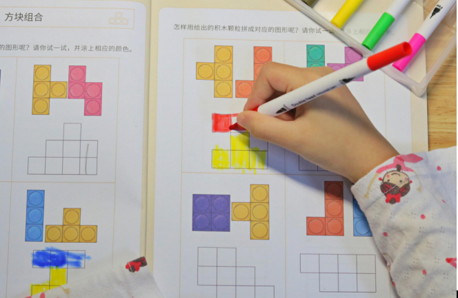 最近我女儿结束了她早教中心的线下全脑课,我整理了一下她的作业纸,发现全脑课的练习题全部都是让孩子用上教具去解决一些围绕着逻辑思维、空间定位、找规律等问题的题型。