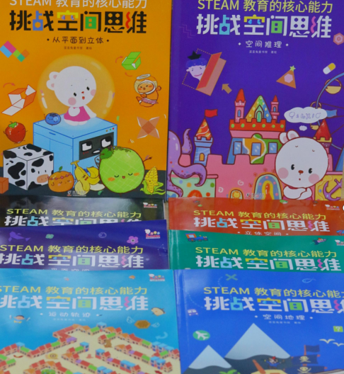 每本的主题内容也都不同,有空间视觉类游戏,空间拼图类游戏,看图说话等等,